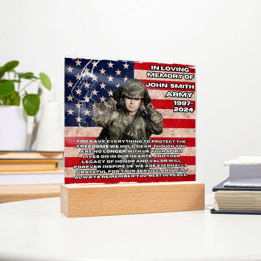 Military Memorial-Personalized this memorial with our LED light Printed Square Acrylic Plaque.S92