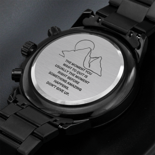 Don't Give Up-Engraved Design Black Chronograph Watch 3