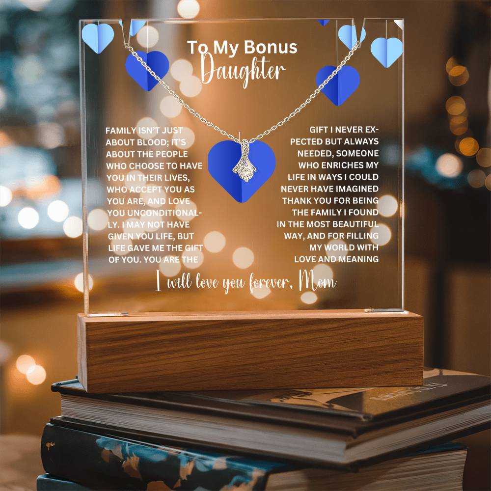 To My Bonus Daughter- Personalized Keepsake Acrylic and Alluring Necklace 70