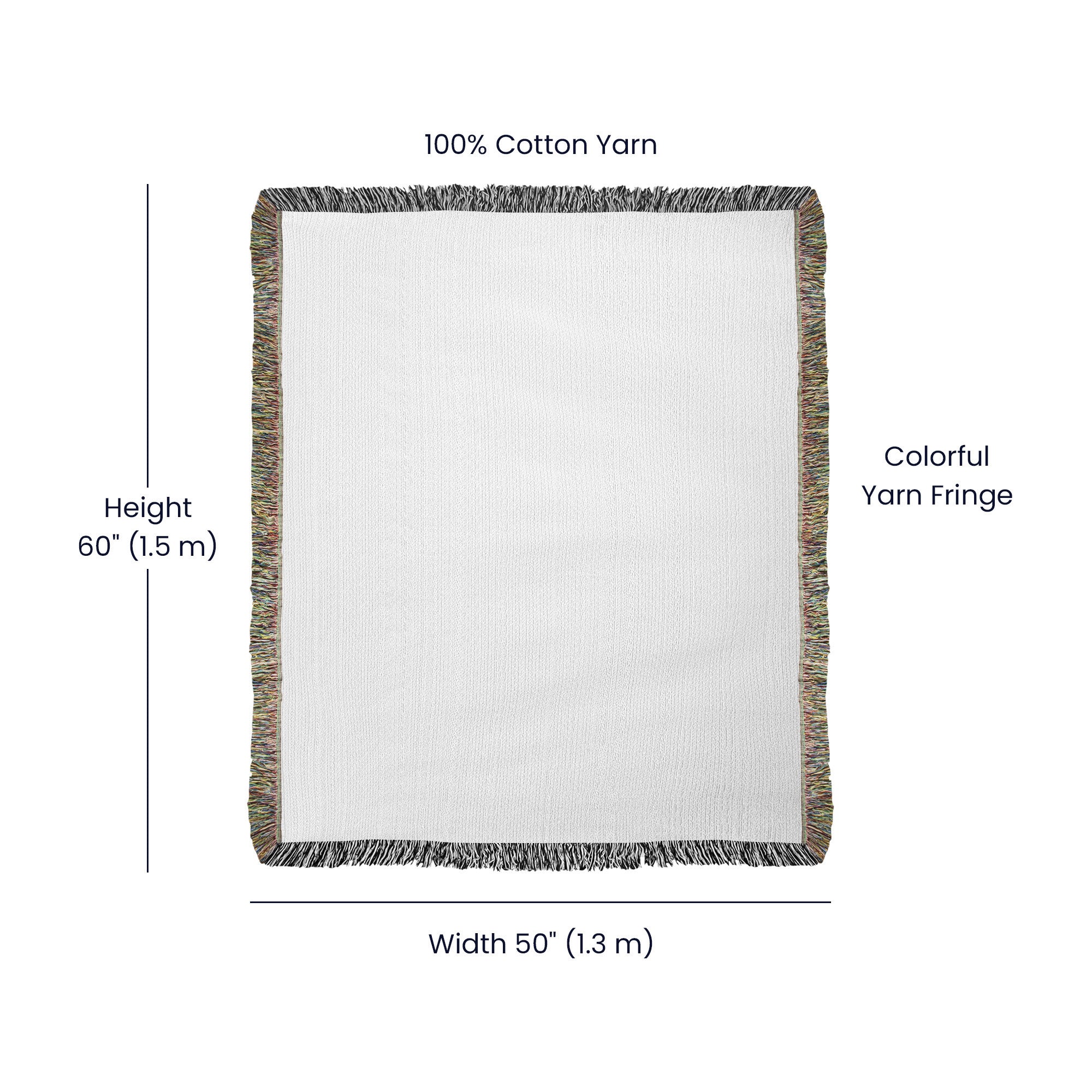 Create a unique keepsake with our Heirloom Artwork Woven Blanket. This custom product is lovingly woven on a loom with cozy 100% cotton yarn. It makes an ideal gift for your beloved partner, family members, or dear friends on special occasions like birthdays, anniversaries, or any event where you want to express your love and appreciation in an unforgettable way.